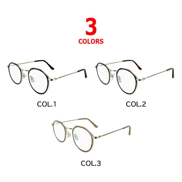 | ●フレームカラー COL.1 フレームカラー: ブラック+ゴールド COL.2 フレームカラー:ブラウンデミ+ゴールド COL.3 フレームカラー: ミルキーブラウン+ゴールド ●レンズカラー(全色共通) クリア | ●素材 レンズ素材:プラスチック(コーティング) レンズ枠素材: プラスチック(塗装)、ニッケル合金(メッキまたは塗装) テンプル素材:ニッケル合金(メッキまたは塗装) ●仕様 曇り止め加工レンズ UV99% カット ブルーライト39%カット フレキシブルノーズパッド フレキシブルイヤーパッド ●可視光線透過率 95% |