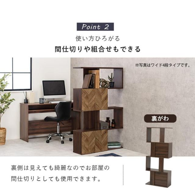 オープンシェルフ 扉付きディスプレイラック スリム 4段 幅59cm おしゃれ 木目調 ヘリンボーン柄