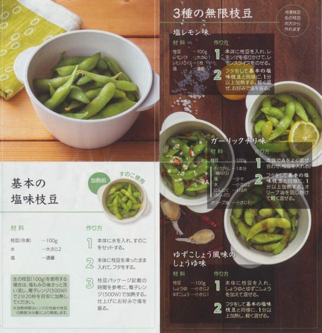 枝豆以外にも、ブロッコリー・もやし・椎茸などに使用できます。