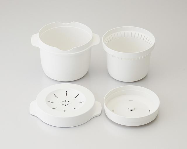 外容器に水を入れ、発生した蒸気が内容器全体を包み込み、ムラなく加熱します。