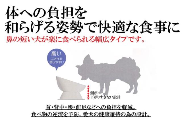 「大阪府立大学 獣医学専攻×スケーター株式会社の共同開発商品」ワンちゃんが楽な姿勢で食べやすい、獣医さんが考えた超小型犬種用の陶器製食器。高さがあるので首・背中・腰・前足などへの負担を軽減し、食べ物の逆流などの予防、健康維持のためにもおすすめです。奥側が高くなっているのでフードがこぼれにくく、底がボウル上になっているのでフードが中央に集まって食べやすい。滑り止め・転倒・キズ防止のシリコーンマット付き。