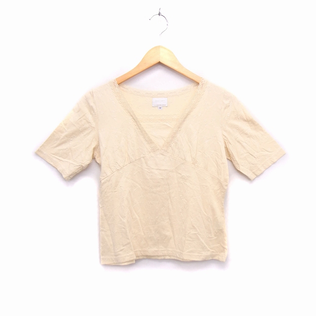 【中古】エマジェイムス EMMAJAMES Tシャツ カットソー スクエアネック 半袖 コットン 綿 レース 刺繍 花柄 M クリーム