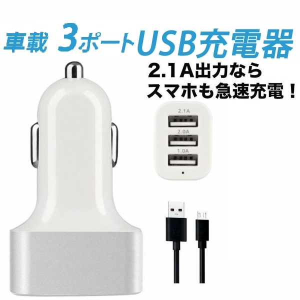 高容量 USB3ポート シガーソケット充電器 カーチャージャ 車充電器 車載充電器 高速充電 iPhone スマートフォン車内充電 12V/24V対応