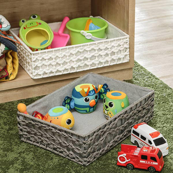 シンプルで生活感が出にくいデザインなので、リビングやキッチン、寝室等でも浮かずに落ち着いた印象を与えてくれます。ざっくりとした編み目のバスケットは置くだけでサマになる空間を作り出します。