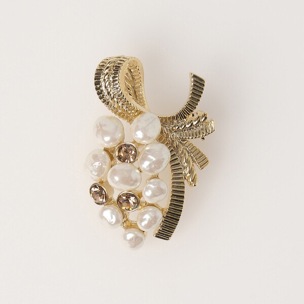 葡萄のようなシルエットが可愛らしい、華やかなブローチ。美しく煌めくメタルパーツに、不揃いなパール&ストーンモチーフをあしらっています。品のある小ぶりなサイズ感なため、お洋服はもちろん、帽子など小物のアクセントにもおすすめ。日常からフォーマルまで様々なシーンに活躍します。※商品画像はサンプルを使用しているため、実際の商品と色味などの仕様が異なる場合がございます。予めご了承ください。model:T.171/B.80/W.59/H.88着用サイズ:F