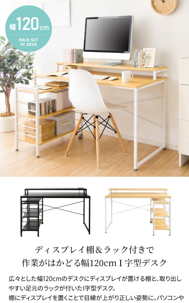 パソコンデスク パソコン デスク ラック付き 入学 机 ラック付きI字パソコンデスク RTID-1200 テレワーク コンセント付き 幅120cm ラック付き PCデスク テーブル ラック付 パソコンテーブル I字型 2口コンセント パソコン 収納 送料無料 アイリスプラザ