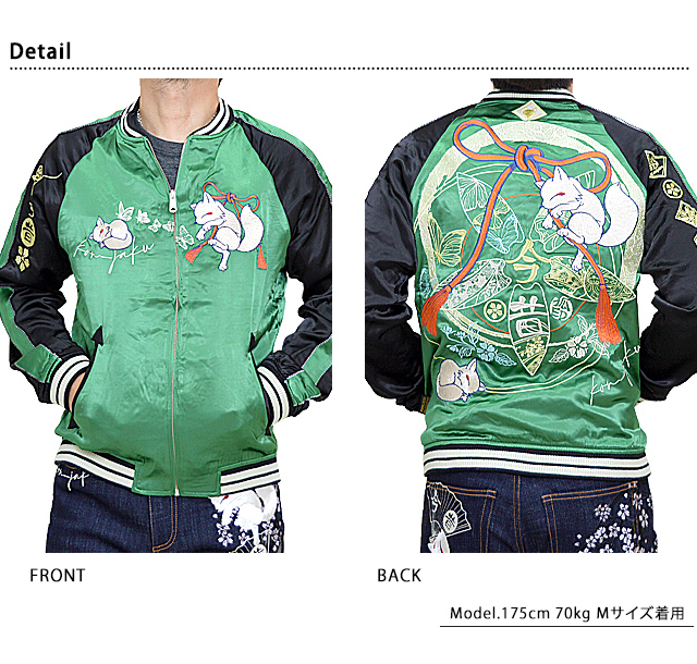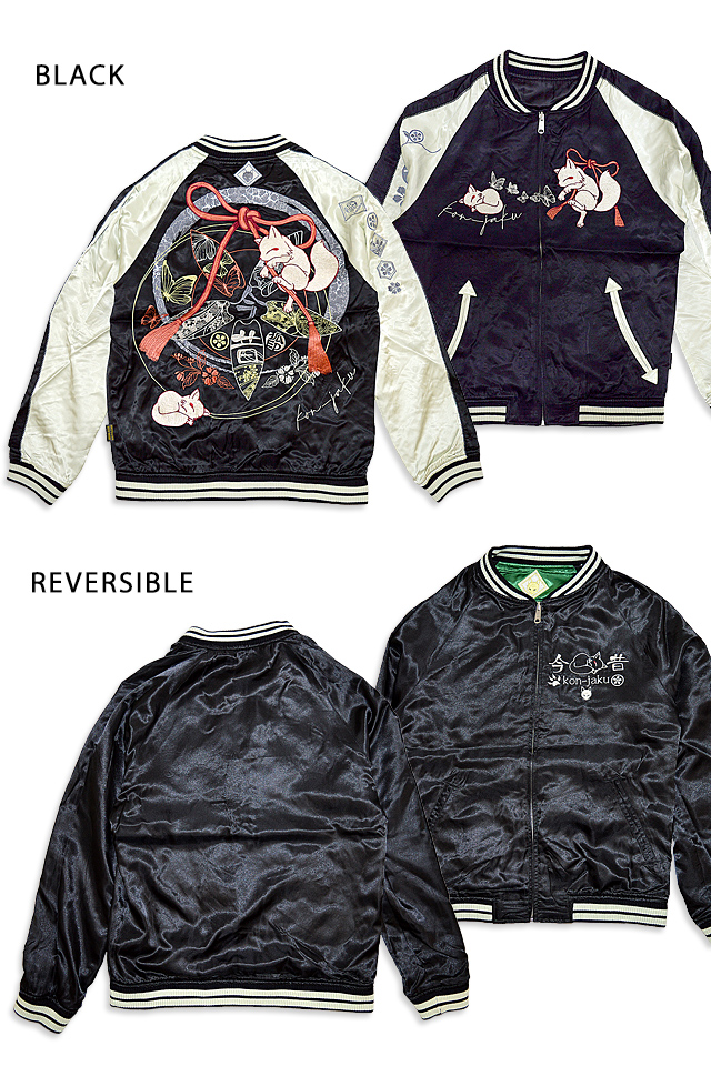 家紋デザインのリバーシブルスカジャン 今昔 KJ-29040 和柄 和風 狐 キツネ きつね 刺繍 スーベニア