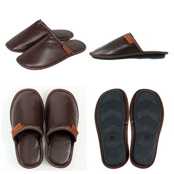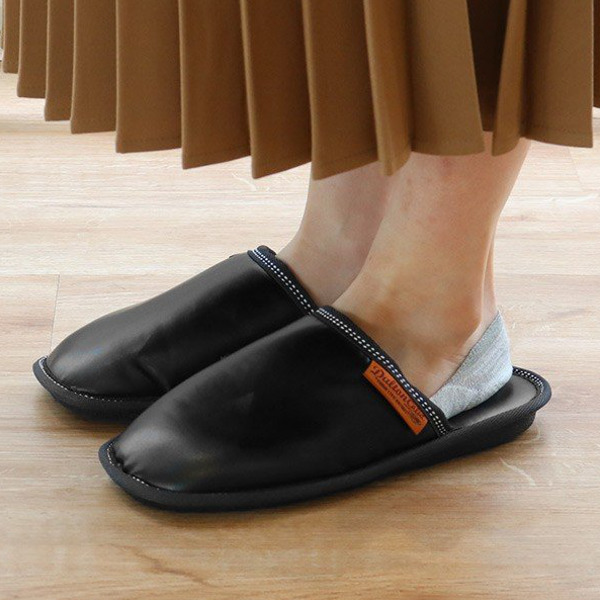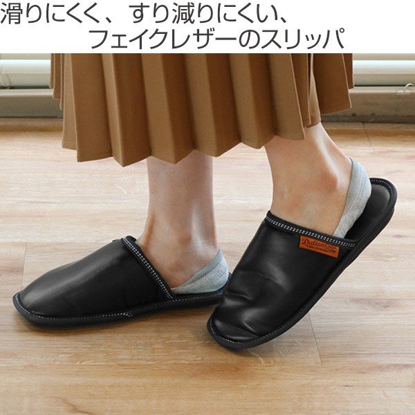 スリッパ 合皮 ウィメンズ 女性用 23.5cm〜25cm ダルトン DULTON ( ルームシューズ ルームスリッパ 室内 フェイクレザー 外縫い 前詰まり ロゴ入り シンプル 深履き 持ち運び 収納袋付き 来客用 おしゃれ )