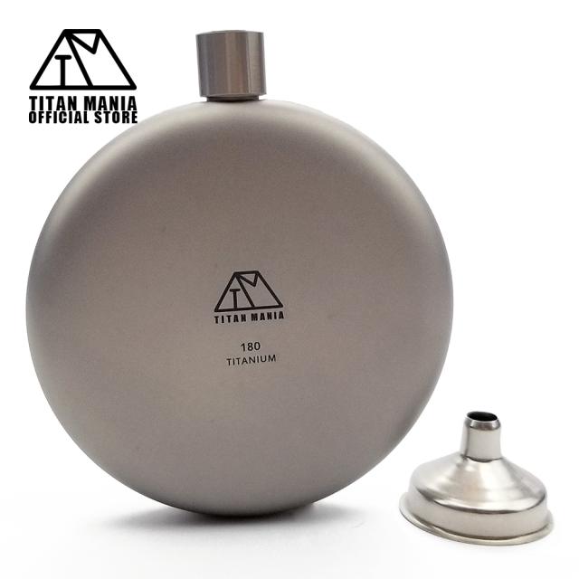 TITAN MANIA チタンマニア スキットル チタン製 丸型 180ml 軽量 ウイスキー ボトル ヒップフラスコ チタンスキットル 携帯 携帯ボトル おしゃれ キャンプ アウトドア 持ち運び 旅行 水筒 錆びない 漏斗付き 収納袋付き