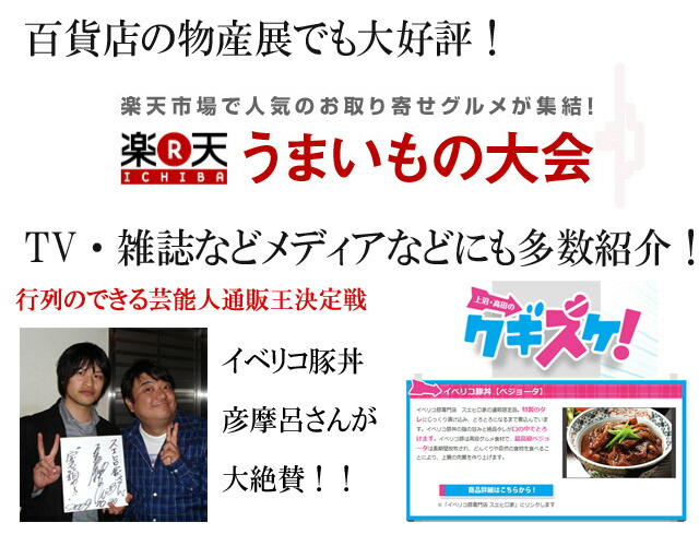 | ・冷凍状態で湯煎は約15分。 <店長おススメの豚丼食べ方!> 冷蔵庫で解凍して、フライパンで温めるくらいに軽く焼く。あつあつご飯に、キャベツの千切り(細め)をのせて、その上にイベリコ豚丼の具をかける。(鰻の蒲焼き風にも) ※注意※ 決して電子レンジで温めないください。脂身が爆発する恐れがあります。 湯煎を長時間すると旨みが逃げます。 | |