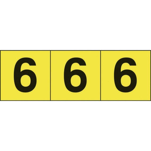 TRUSCO 数字ステッカー 50×50 「6」 黄色地/黒文字 3枚入