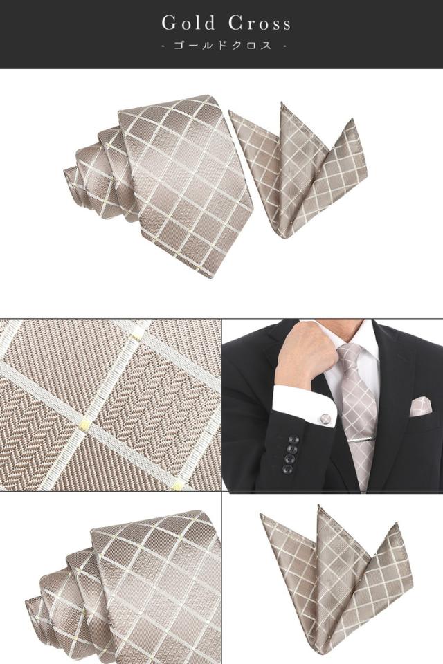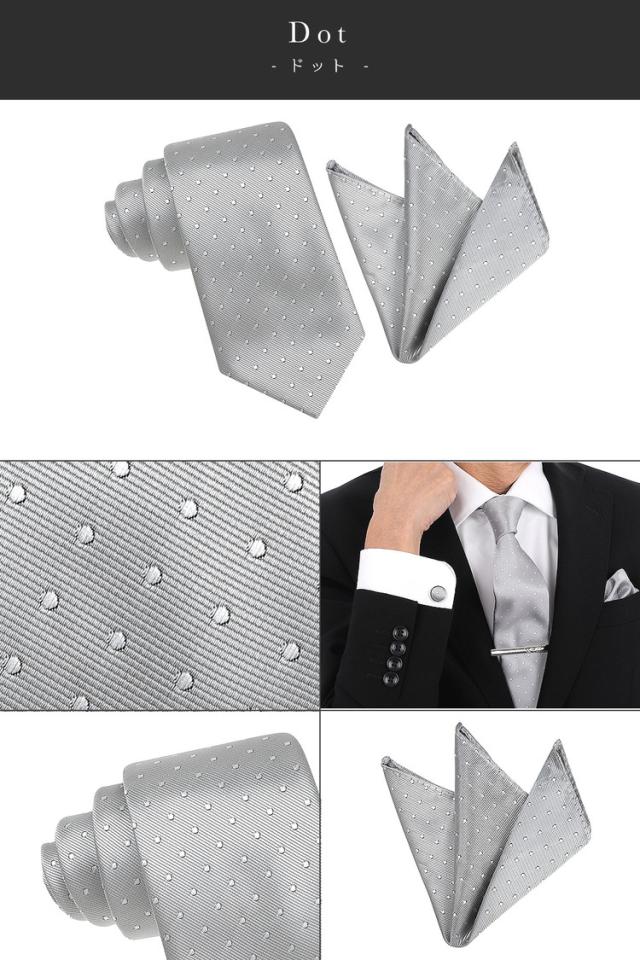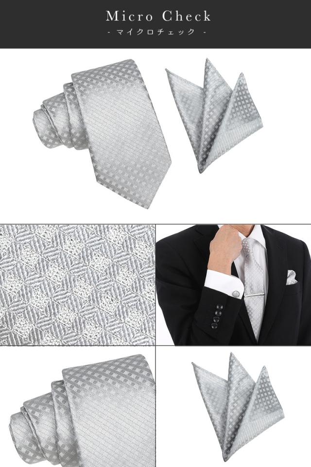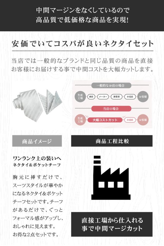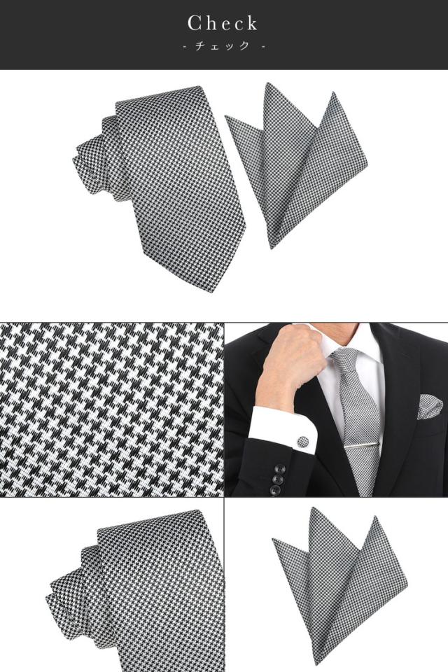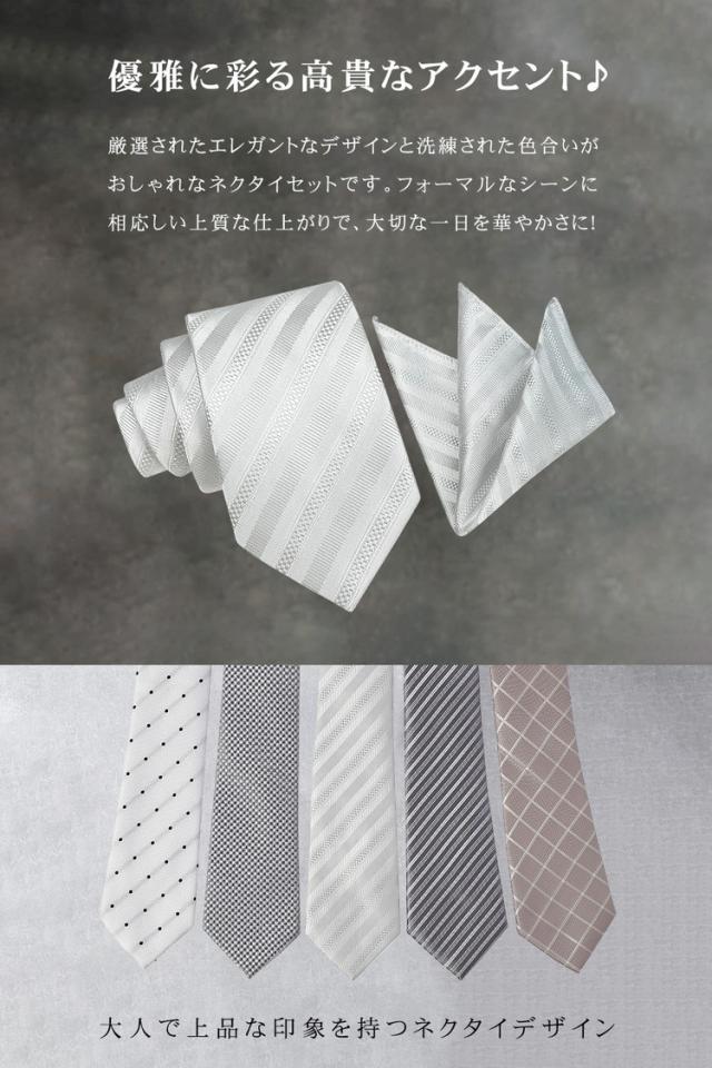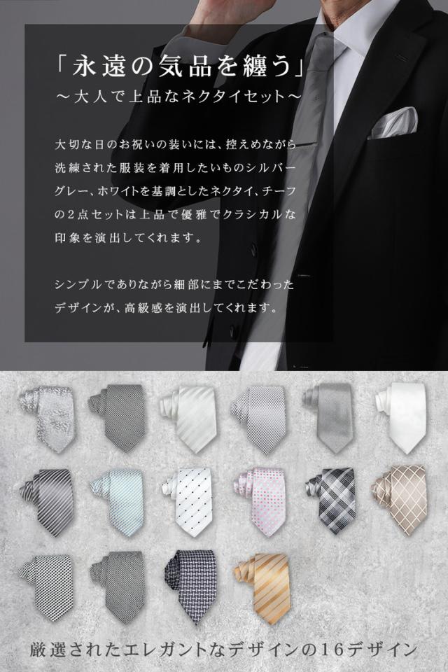 ネクタイ・ポケットチーフがセットになった高見えする2点セットです