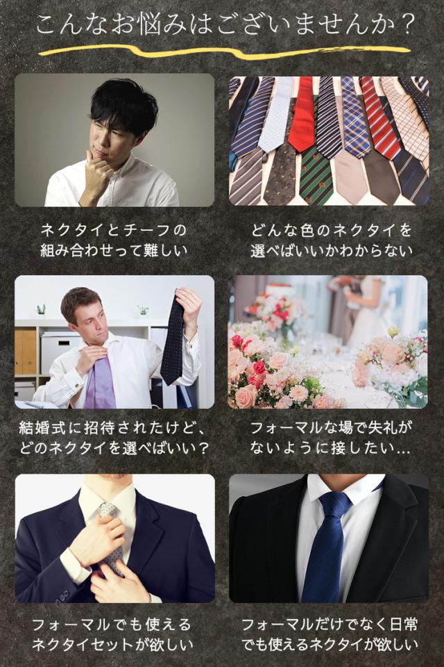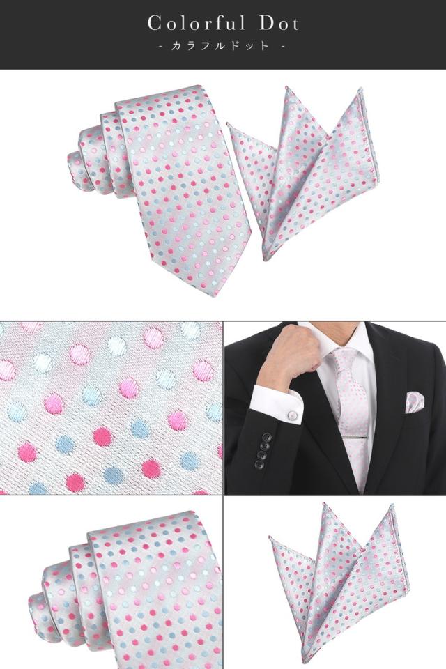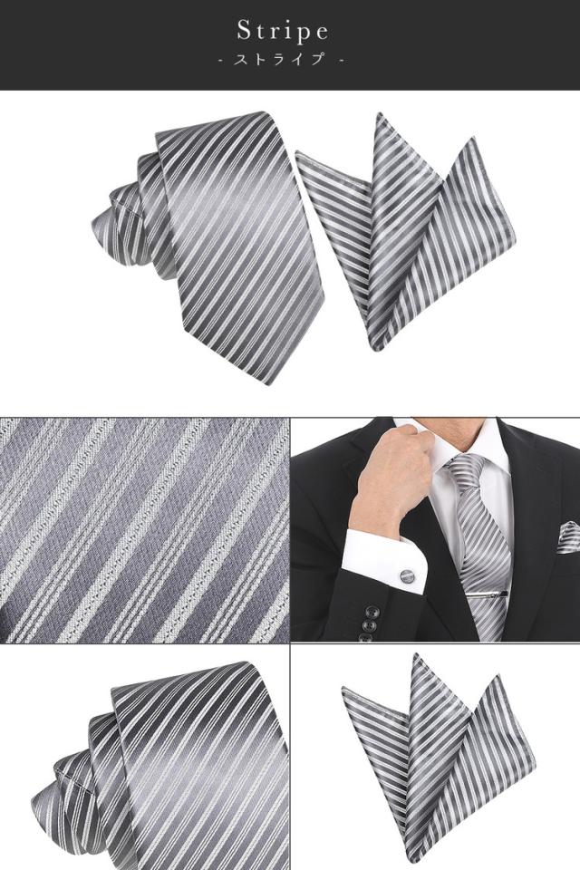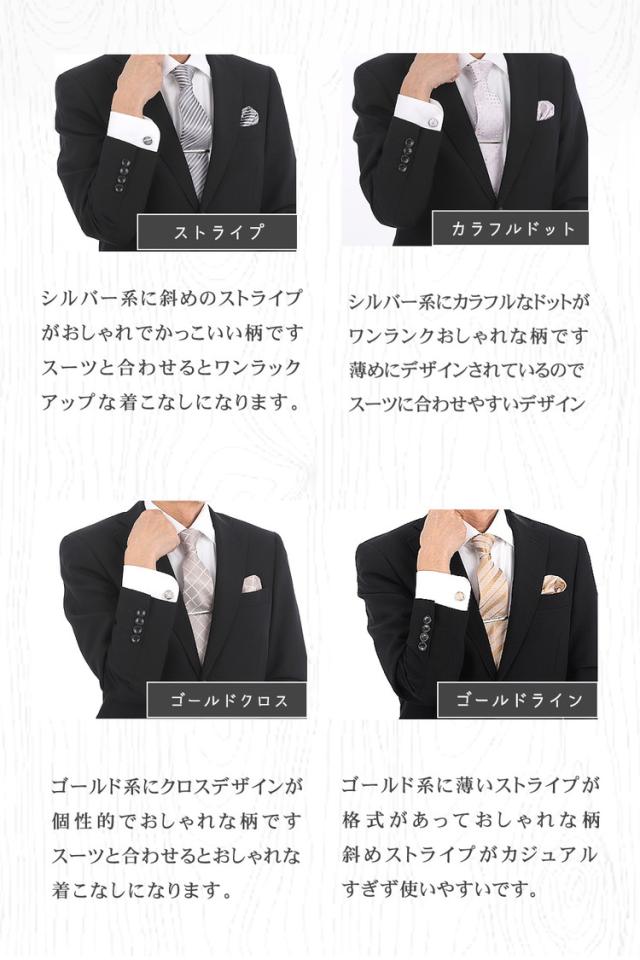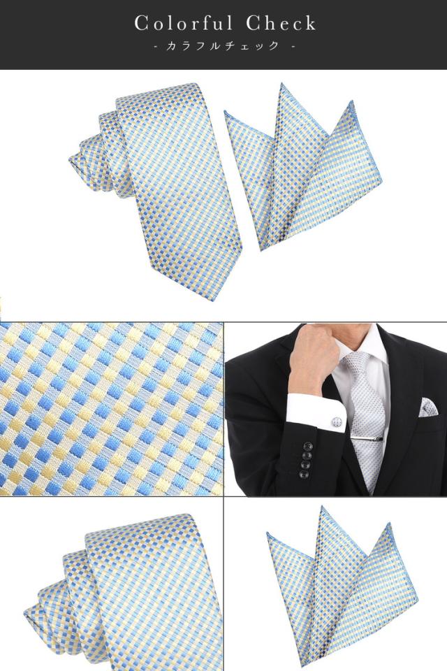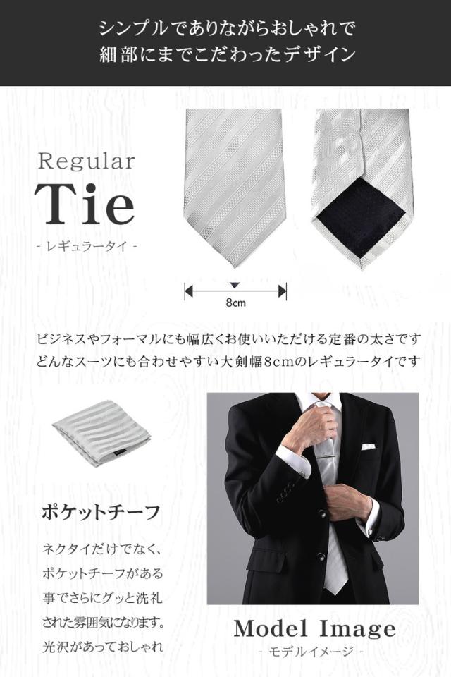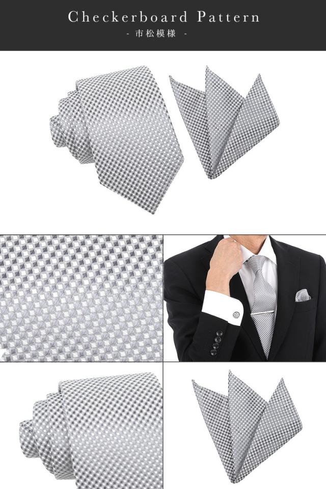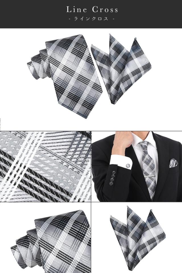 ネクタイ・ポケットチーフがセットになった高見えする2点セットです