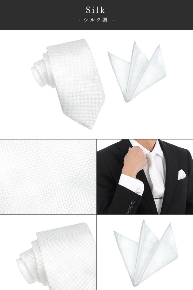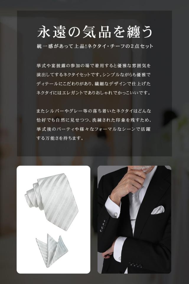 【結婚式等におすすめ!上品に決まる ネクタイ&ポケットチーフ 2点セット】