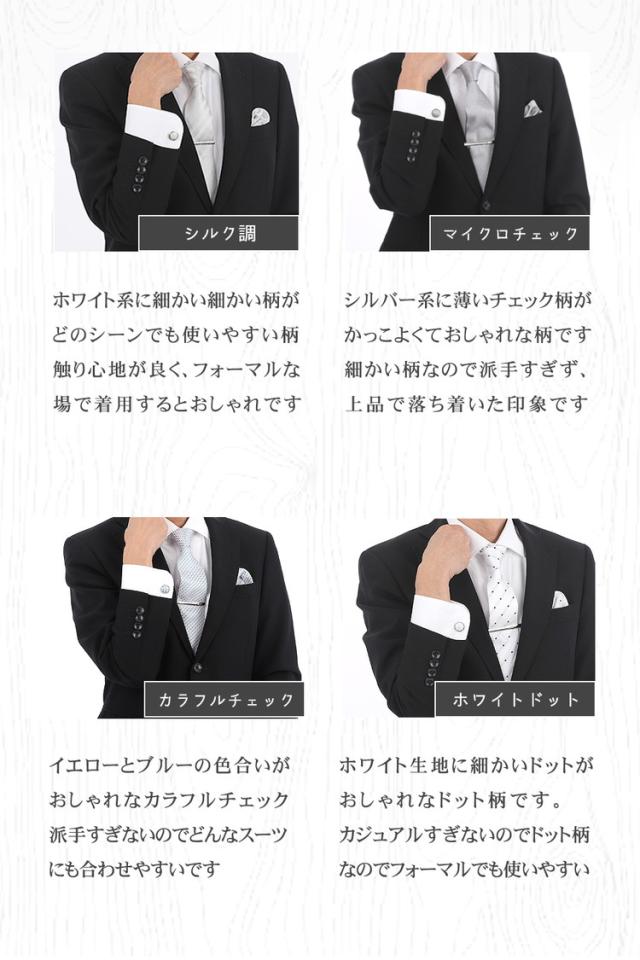 ポケットチーフを挿すだけワンランク上の装いになる!ネクタイ&ポケットチーフのお得な2点セットです