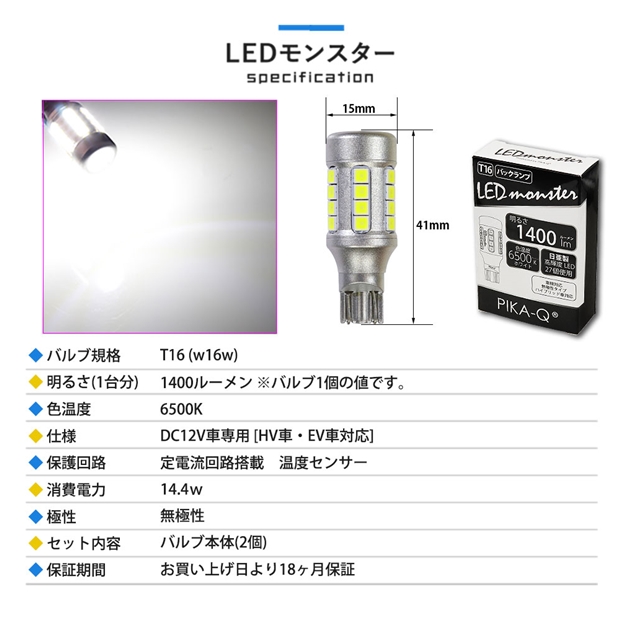 LED,ピカキュウ,LED専門店,LEDバルブ,日亜製LED27個搭載,T16ウェッジ,T16 LED monster1400lmバックランプ用ウェッジバルブ,1400ルーメン,バックランプ,後退灯,DAIHATSU,MIRA TOCOT,ダイハツ,ミラトコット,トコット,LA550S,LA560S