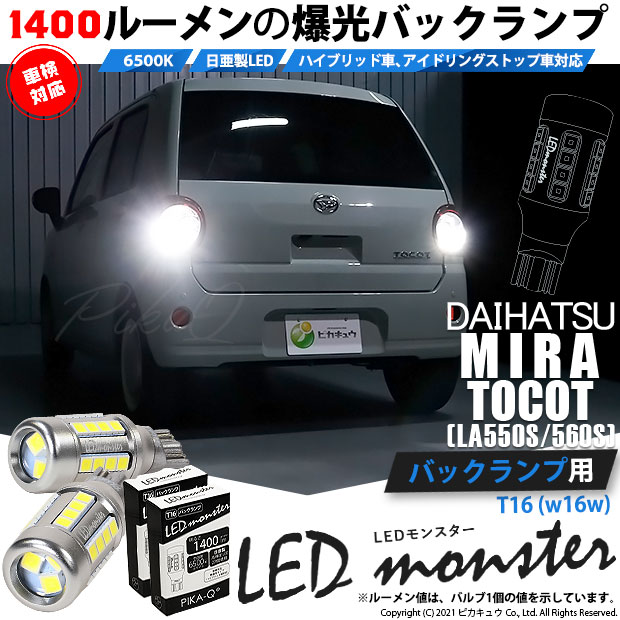 ダイハツ ミラトコット (LA550S/560S) 対応 LED バックランプ T16 LED monster 1400lm ホワイト 6500K 2個 後退灯 11-H-1