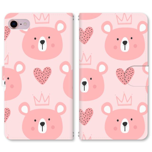 スマホケース 手帳型 iPhone13 iPhoneSE2 アイフォン 8 aquos sense GooglePixel xperia galaxyなど多機種制作対応 m3180_くまA
