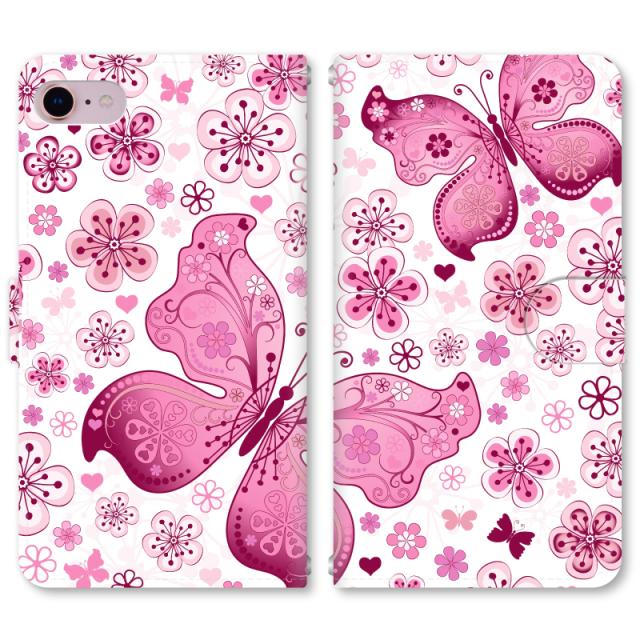 スマホケース 手帳型 iPhone13 iPhoneSE2 アイフォン 8 aquos sense GooglePixel xperia galaxyなど多機種制作対応 m3210_花と蝶C