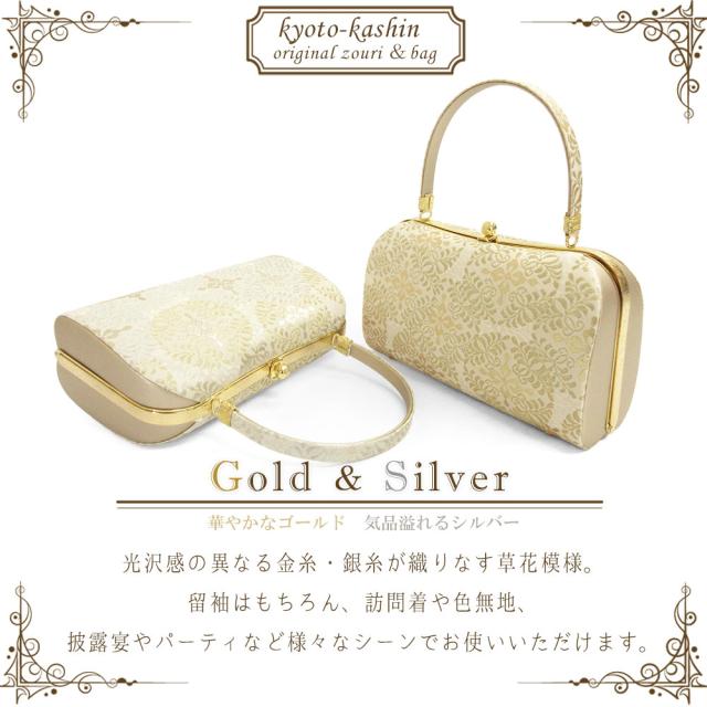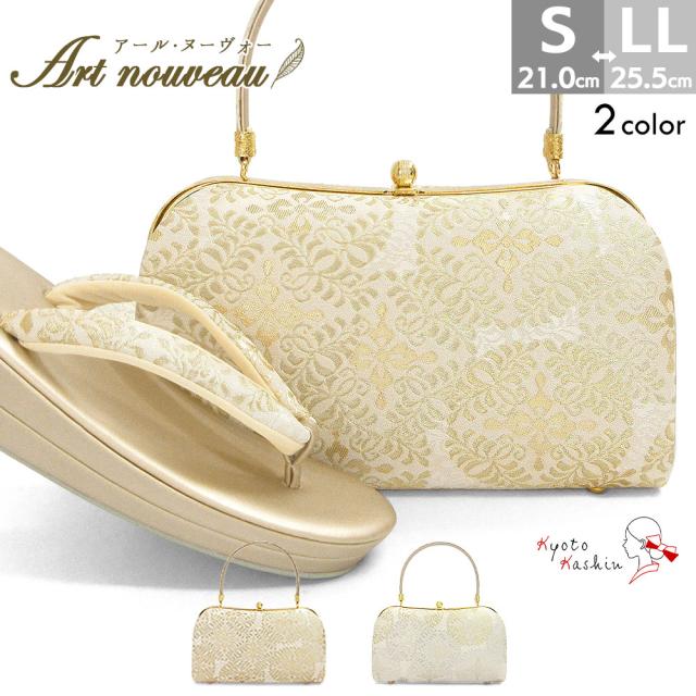 草履バッグセット 留袖 草履 バッグ セット バッグセット 草履バッグ アールヌーヴォー 草花模様 礼装 黒留袖 S M L LL 3L サイズ フリーサイズ 小さいサイズ 大きいサイズ ゴールド シルバー 金 銀 結婚式 披露宴 入学式 卒業式 お宮参り フォーマル