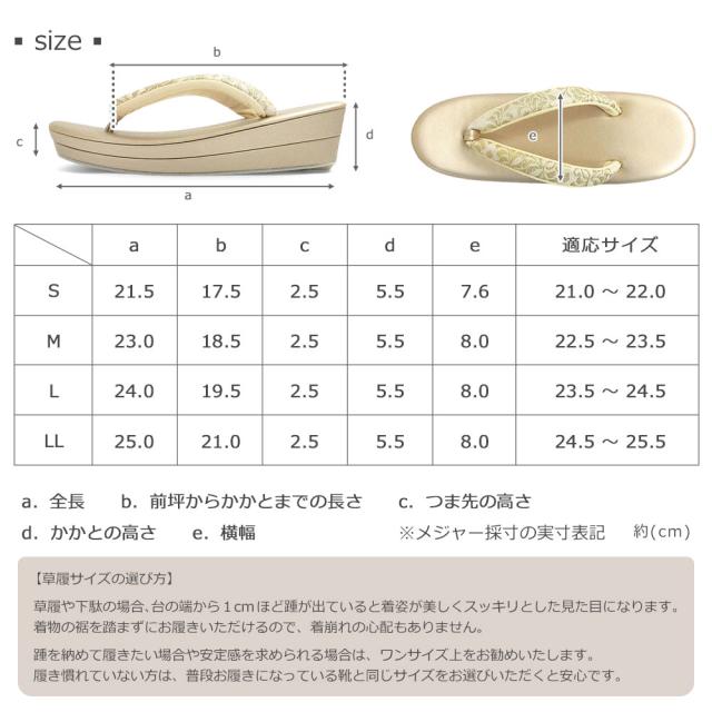 草履はS〜LLと幅広いサイズをご用意しております。
