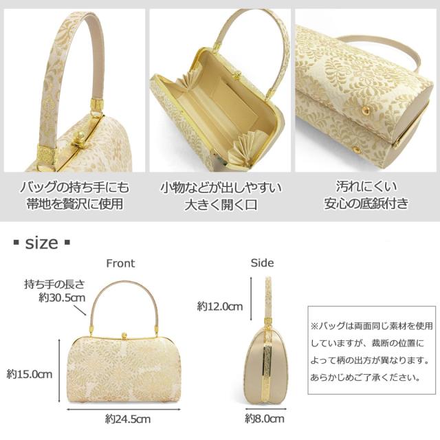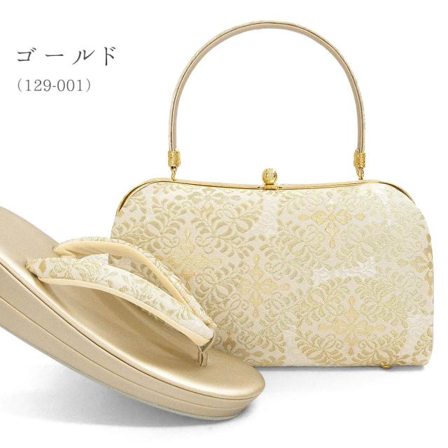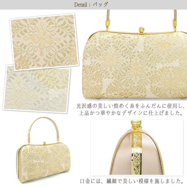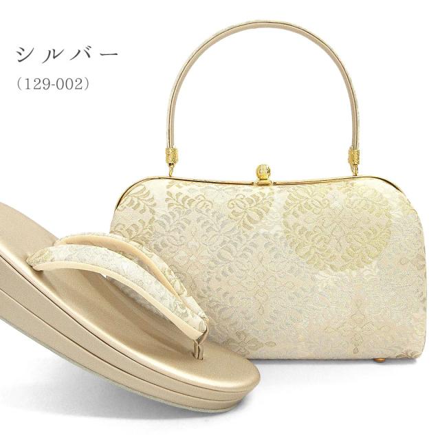 光沢感の美しい金糸や銀糸をふんだんに使用し、上品な草履バッグセットに仕上げました。