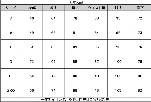 サイズ:身長 / チェスト / ウエスト
