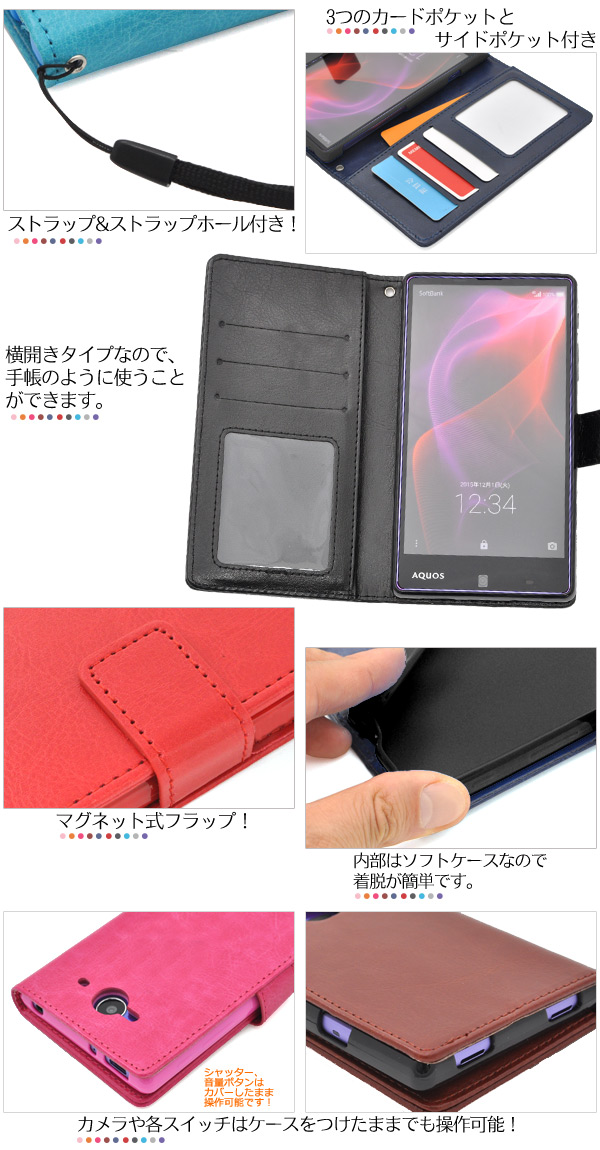 AQUOS ZETA SH-01H/AQUOS Xx2 502SH用 カラーレザー手帳型ケース