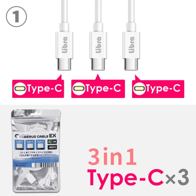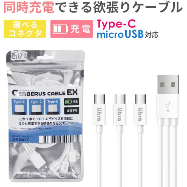 | 商品説明 | 3台同時充電ができるよくばりケーブルです。 コネクタの種類は、Type-CとmicroUSBです。 Type-C×3 Type-C×2 / microUSB×1 Type-C×1 / microUSB×2 microUSB×3 全4種類からお選び頂けます。 お手持ちの端末に合わせてお使いください。 飽きのこないベーシックなホワイトカラー! |