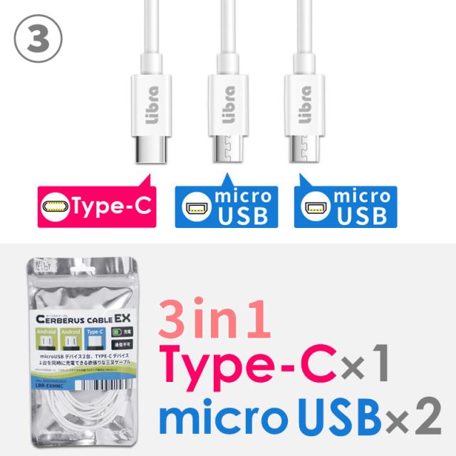 充電ケーブル 3in1 Type-C microUSB スマホ 3台 同時 タイプC typeC 充電 タブレット ゲーム機 モバイルバッテリー デジタルカメラ android アンドロイド AQUOS galaxy Xperia