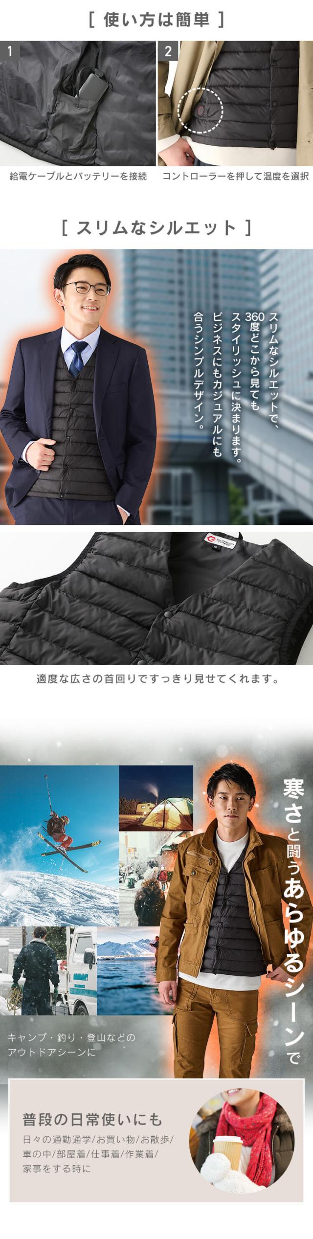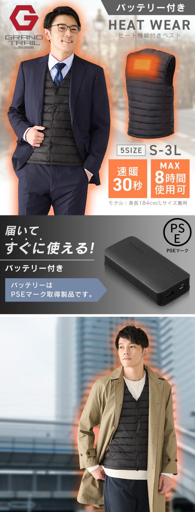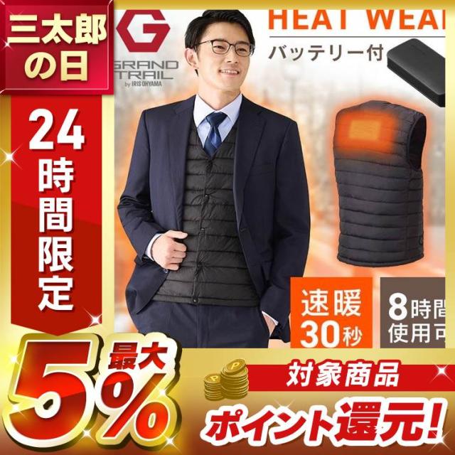 電熱ベスト ヒートベスト ヒーターベスト 防寒着 ヒートウェア メンズヒートベストセット GT21622-BK ブラック ヒーター付きベスト ベスト ヒーター ヒートベスト ヒートジャケット ヒートウェア 電熱 インナー アウトドア レジャー スポーツ