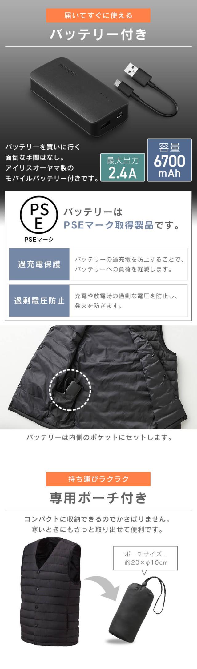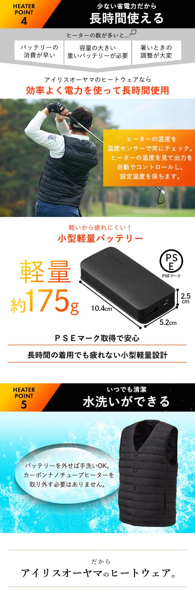 ウェア、ポケッタブル袋、ヒーター、モバイルバッテリー