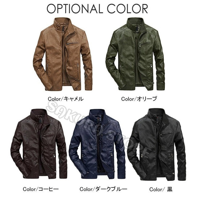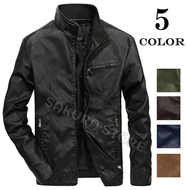ライダースジャケット PUレザー メンズ ジャケット バイクウェア レザージャケット アウター 立ち襟 防風 防寒