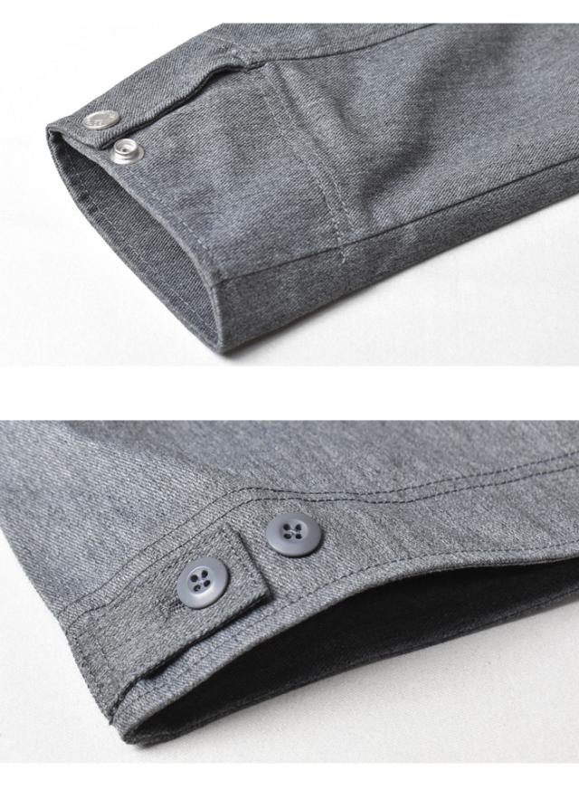 素材には太番手で綾織りされた耐久力のある厚く丈夫なTCのカツラギを使用。シルエットを見直し、肩の落ち感や、ややゆとりのある身幅・ボックスシルエットにすることで現代のファッションに合うようにアップデートされています。デザインもワーク感を残している為、邪魔にならず扱いやすいです。単体ではもちろん、同素材のパンツとのセットアップコーデもおススメです♪