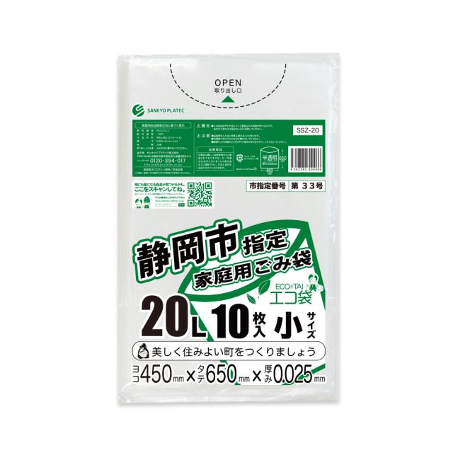 【バラ販売】SSZ-20bara 静岡市指定家庭用ごみ袋 20リットル 0.025mm厚 半透明 10枚/ ゴミ袋 ごみ袋