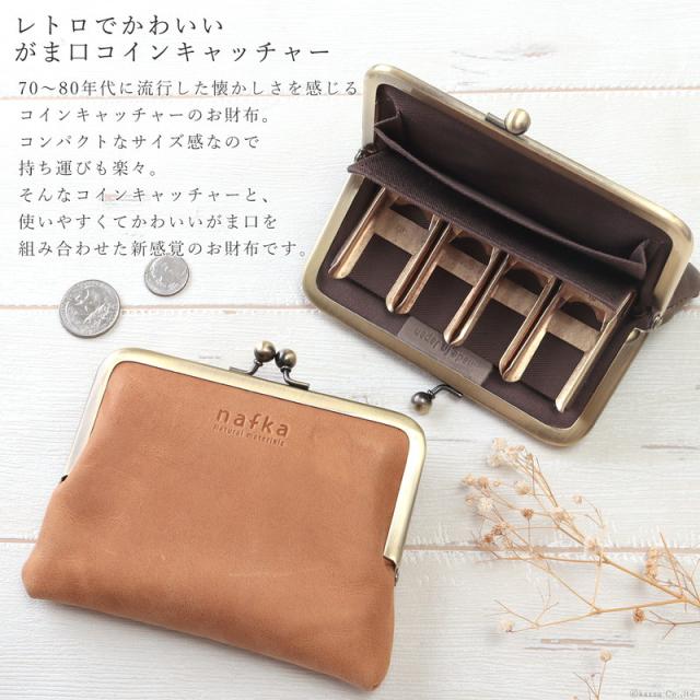 コインキャッチャー レディース がま口財布 折財布 スリム 薄い 本革 モストロレザー 牛革 日本製 nafka ナフカ 【NFK-72107】mlb ブランド 人気