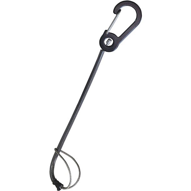 スイベル回転式カラビナ付きのワイヤースキーリーシュ。