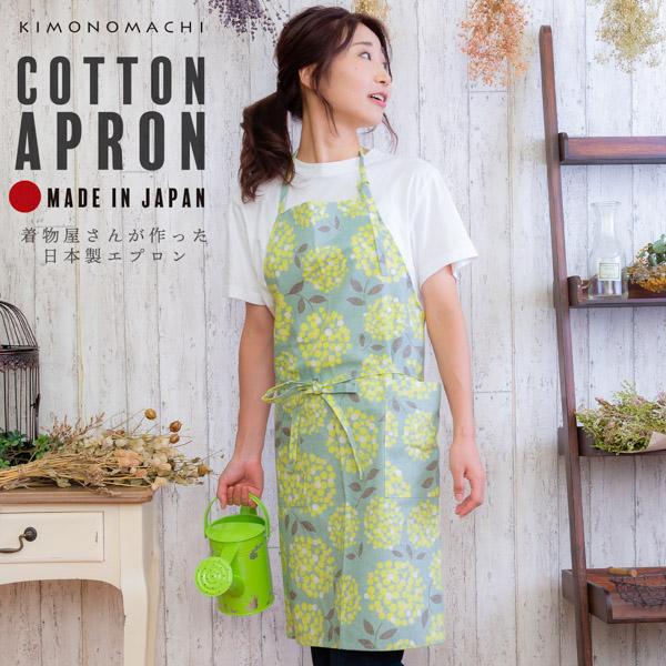 KIMONOMACHI オリジナル エプロン「グリーンブルーブーケ」日本製 オシャレ かわいい カフェエプロン 母の日 敬老の日 誕生日 プレゼント、ギフト、贈り物に最適 【送料無料】【メール便対応可】<H>