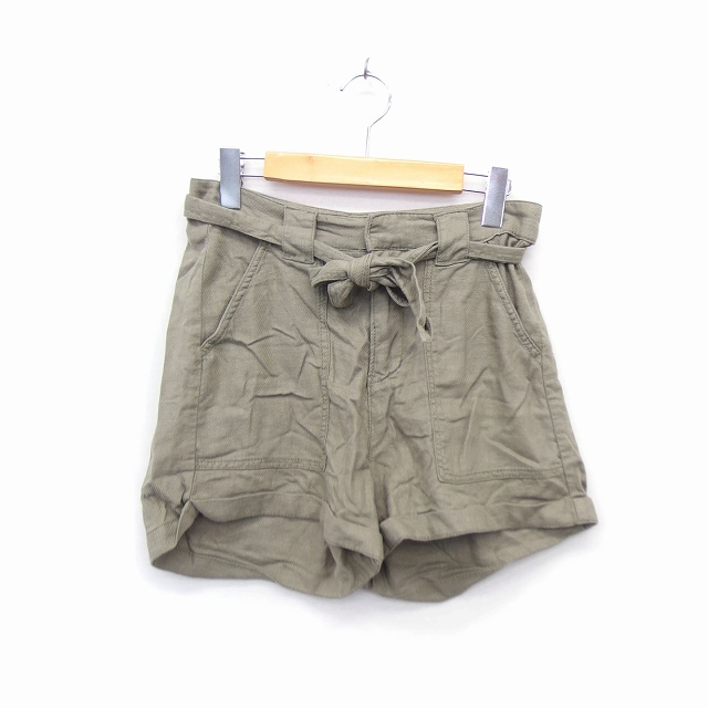 【中古】エイチ&エム H&M ズボン パンツ ショート ジップフライ 麻混 ウエストリボン 34 カーキ /HT8 レディース