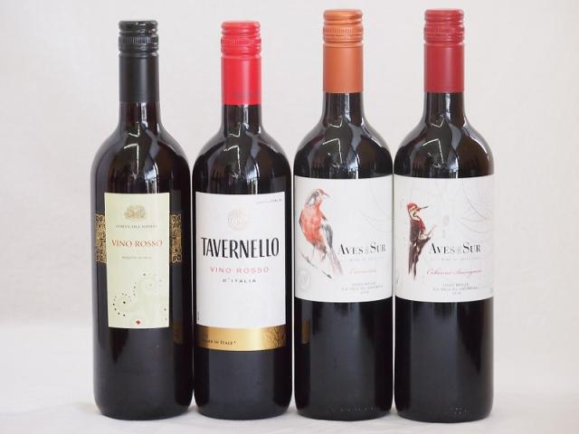 イタリア×チリ赤ワイン4本セット(コルテ デル ニッピオ ロッソ デルスールカベルネ タヴェルネッロ ロッソ デルスールカルメネール) 750ml×4本