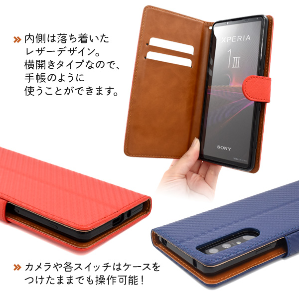 スマホケース Xperia 1 III SO-51B SOG03 A101SO用 手帳型 カーボンデザイン スマホカバー シンプル カジュアル 携帯ケース シンプル オシャレ 装着簡単 横開き 携帯カバー お洒落 ガーリーカジュアル おしゃれ auスマホ スマートフォンケース スタイリッシュ オーソドックス