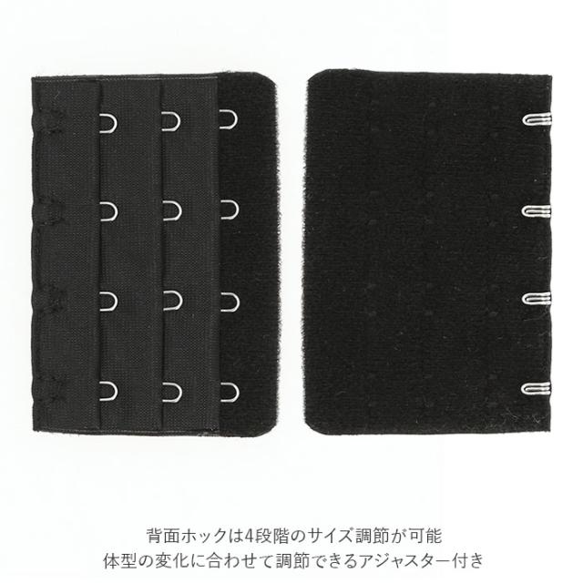 | 素材 | [カップ表生地]ナイロン、スパンデックス [カップ裏生地]コットン100% [側面の表生地]ナイロン80%、スパンデックス20% [側面の裏生地]ビスコース94%、スパンデックス6% ※[付属品]背面ホックアジャスターパーツ |