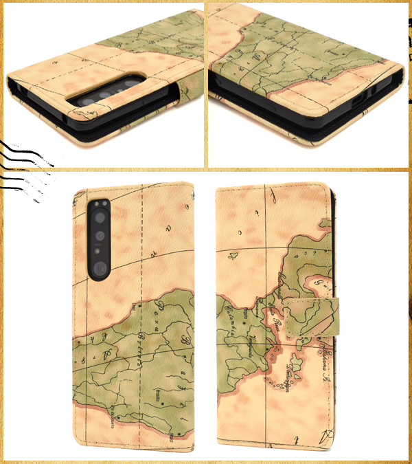 スマホケース Xperia 1 III SO-51B SOG03 A101SO用 手帳型 世界地図柄 携帯ケース ストラップホール付き 装着簡単 シンプル 地図柄 地図 かわいい スマホカバー 可愛い お洒落 オシャレ おしゃれ ワールドマップ 汚れ防止 傷防止 保護カバー auスマホ スマートフォンケース