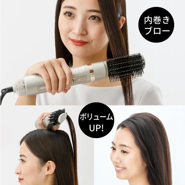 幅広ブラシがうねりやクセをしっかり伸ばしながらブローをサポート。髪を根元からしっかりキャッチするのでボリュームアップも簡単です。