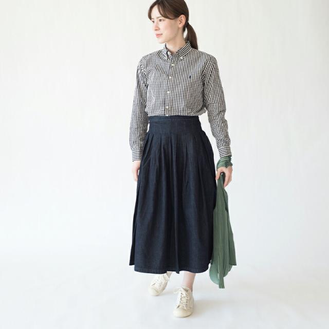 ![]() 着用 : インディゴ 0サイズ (モデル163cm) ![]() インして、凛とした女性。 グランマママドーターのロングスカートはトップスをインするスタイルとよく合います。 スカートを履くとき、いつも出して着るな〜って方、ぜひ裾をインして合わせてみてください。 ウエストラインが見えることで、背筋を伸ばして歩きたくなるような、凛とした印象になります。 ![]() 着用 : ベージュ 0サイズ (モデル163cm) ![]() ![]() 着用 : インディゴ 0サイズ (モデル163cm) ![]() 腰回りがスッキリとした、程よいボリューム感のシルエット。 ![]() ウエストのボタンが可愛い、カジュアルすぎない上品な印象です。 | ||||||||||||||||