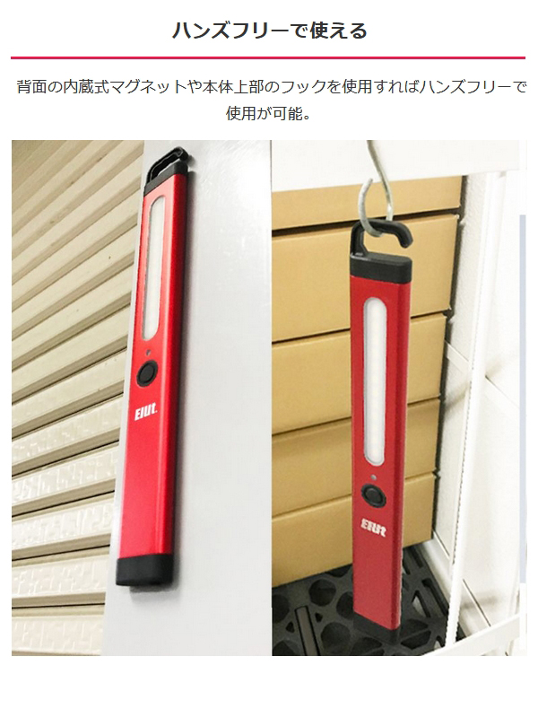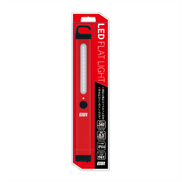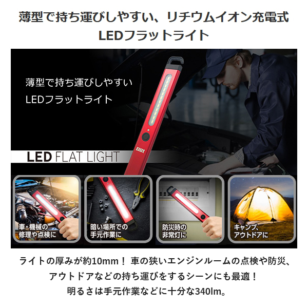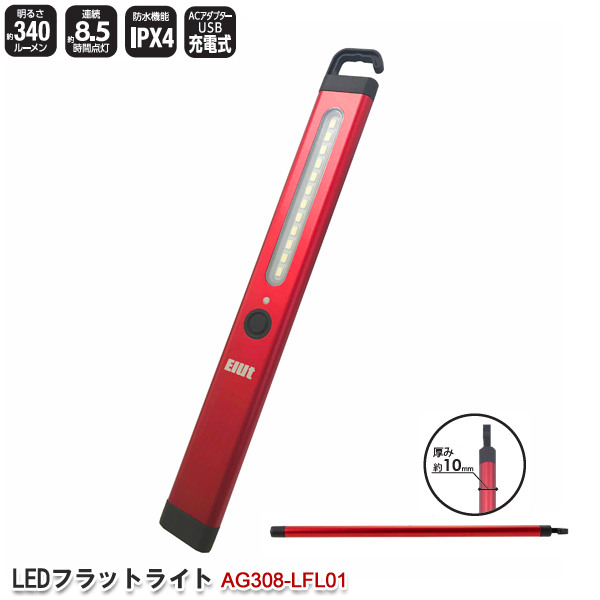 LEDフラットライト AG308-LFL01 薄型 LEDライト 軽量 充電式 防水 作業灯 手元灯 非常灯 キャンプ アウトドア フック付き Elut エルト