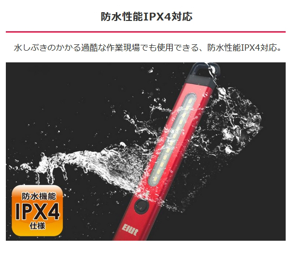 - 水しぶきのかかる現場でも使用できる防水性能IPX4対応!