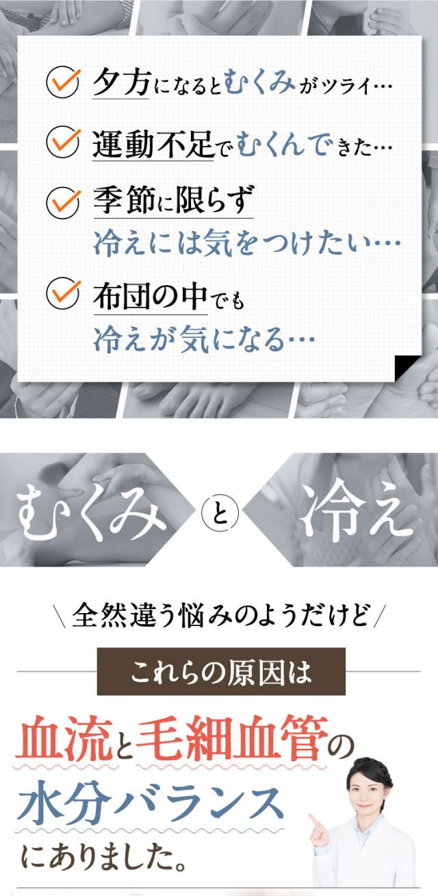 <足のむくみや手の冷えは、毛細血管の水分バランスと血流を整えましょう>