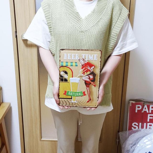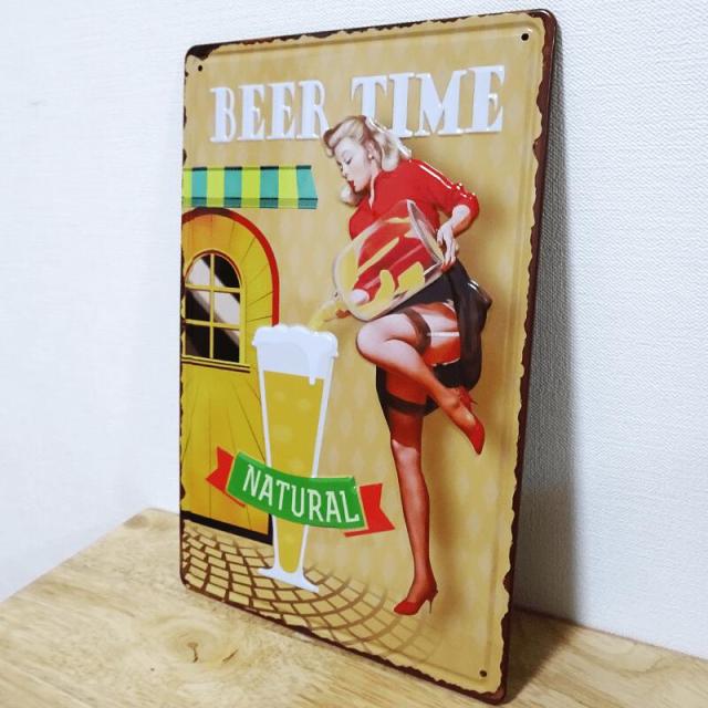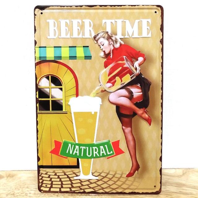 ブリキ看板 ビンテージ セクシー BEER TIME アンティーク ガレージ かわいい プレート 壁飾り ビール アメリカン 雑貨 インテリア