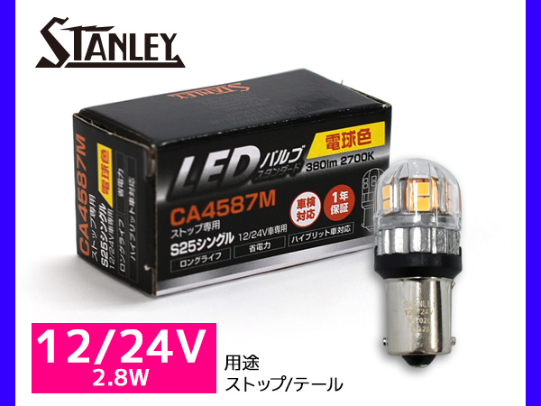 LEDバルブ 12/24V 2.8W S25 BA15s ストップ テール ランプ 380lm 2700K 電球色 スタンレー STANLEY CA4587M スタンダード 補修用 1個